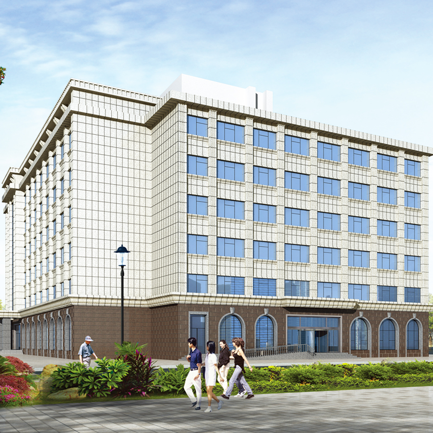 該工程整體采用石材幕墻及玻璃幕墻,建筑造型略帶歐式風(fēng)格,通過(guò)石材的折線、歐式構(gòu)件造型來(lái)實(shí)現(xiàn)整體建筑。